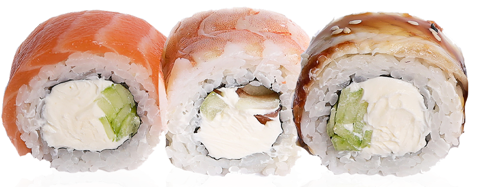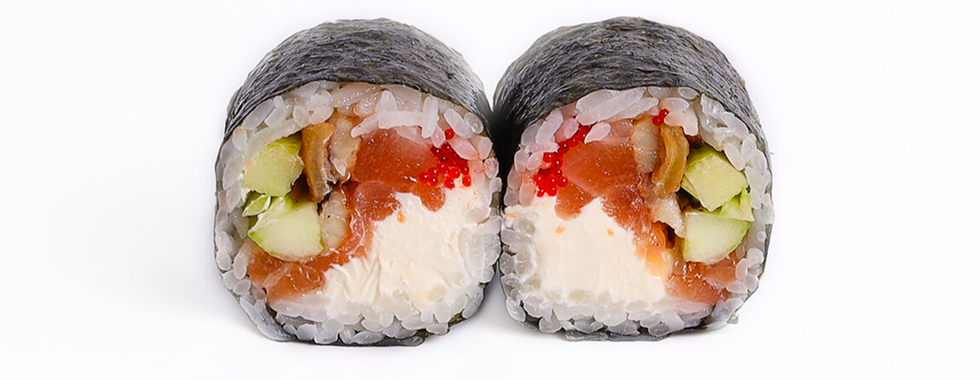 Рис, норі, огірок, крем сир, чедр сир, ікра тобіко