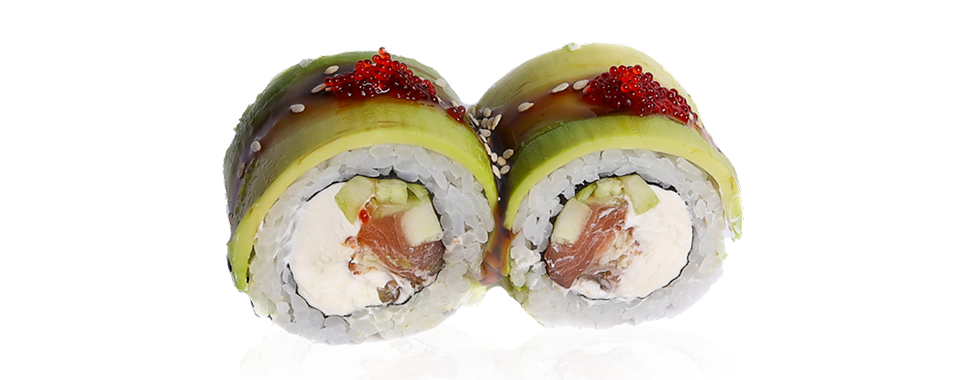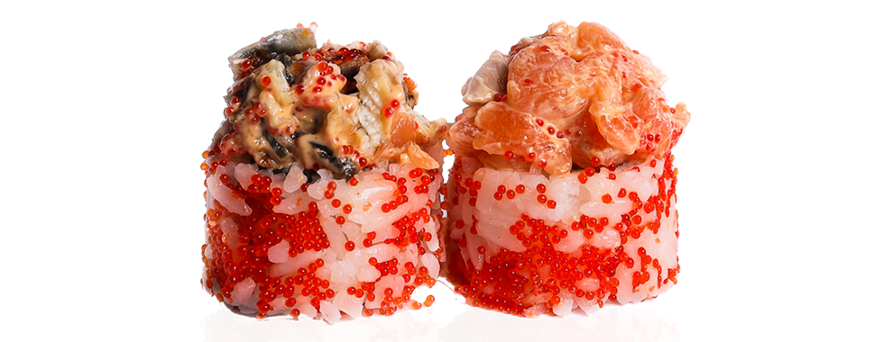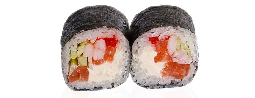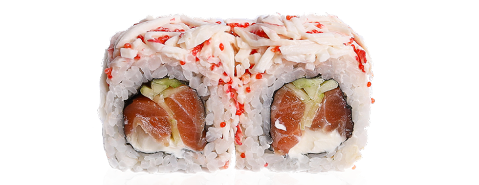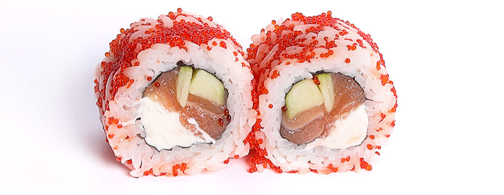 рис, норі, огірок, лосось, вугор, сніжний краб, ікра тобіко, крем сир, унагі соус, кунжут